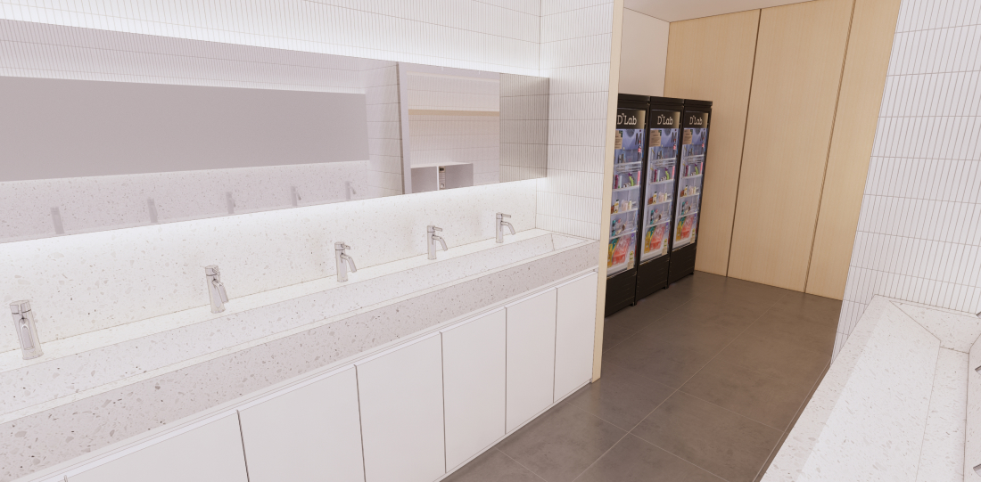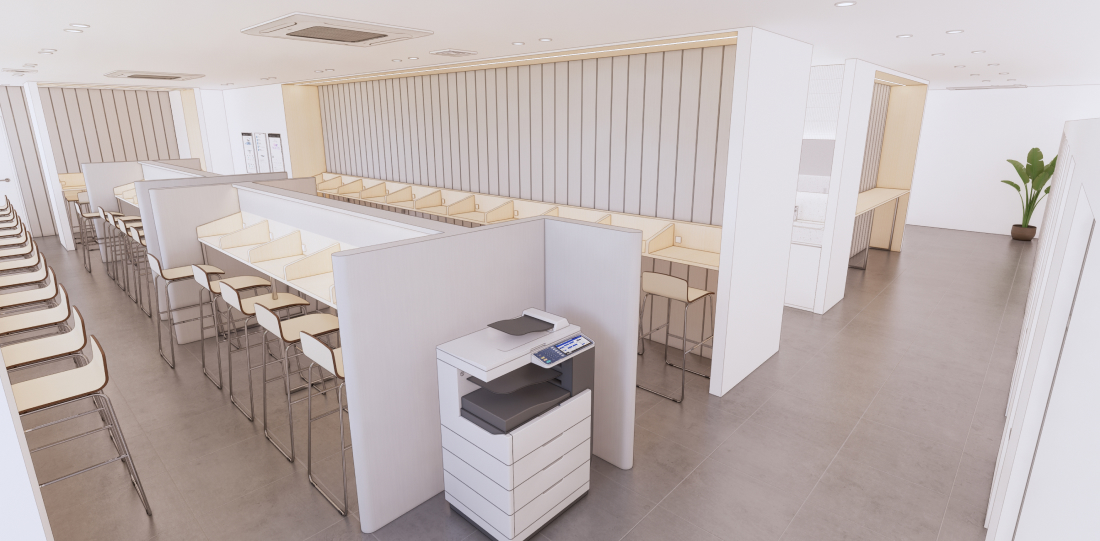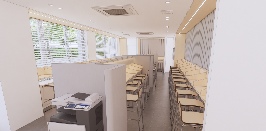 편의시설을 완비한 휴게공간 제공 & 학습관리를 담당하는 management 존 (키오스크를 통한 관리 시스템 구축)